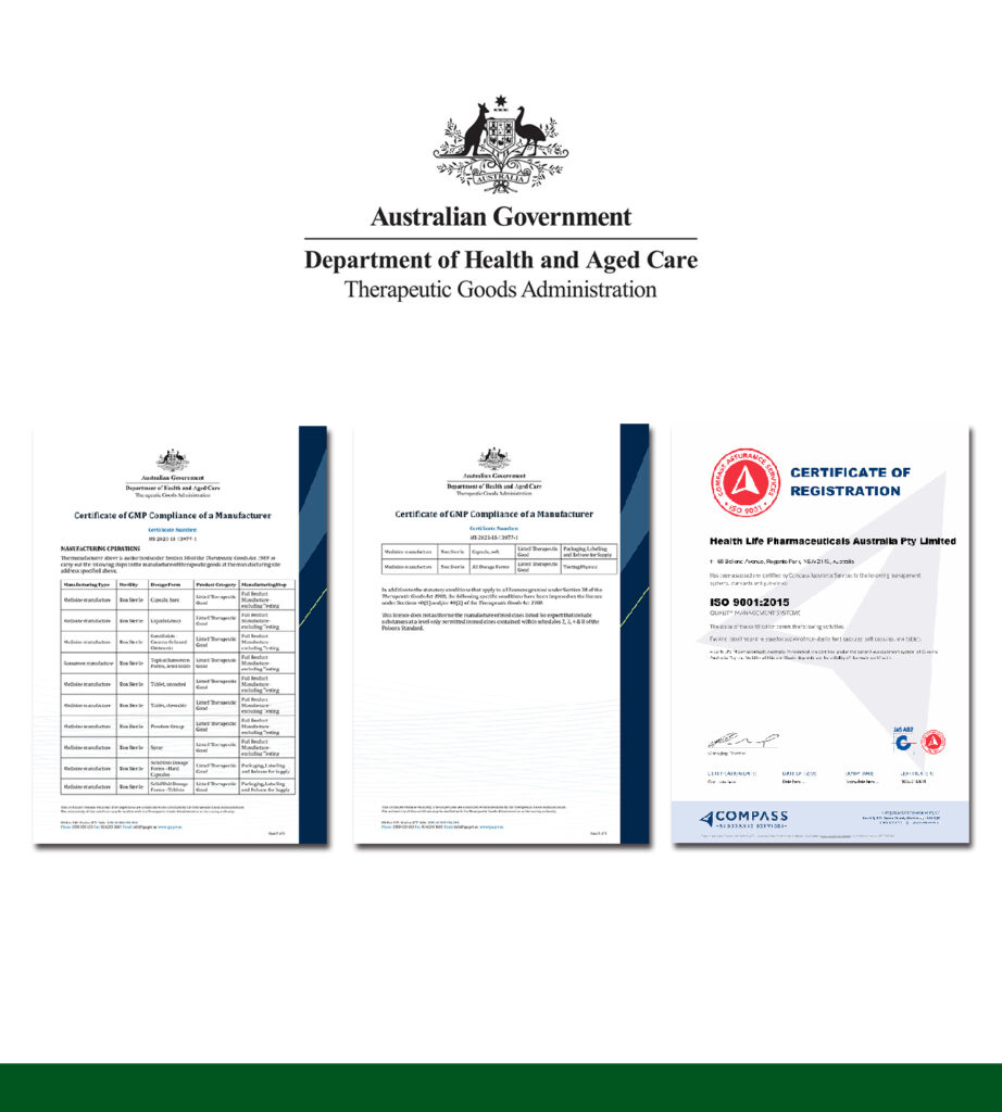 · GMP / PICs complient and licensed with Australia TGA (Therapeutic Goods Administration)